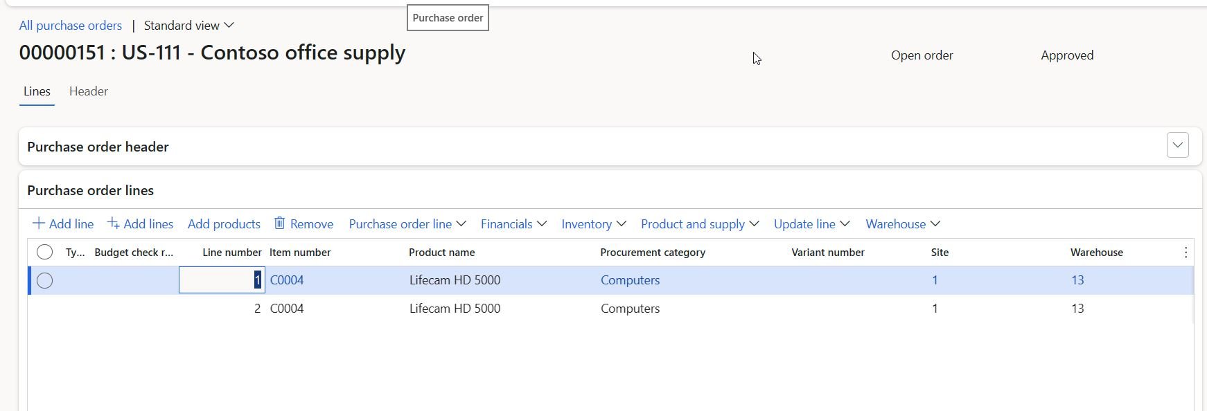 - D365 F&O will present a summary of the requisitions selected for consolidation. Review the details and confirm the consolidation.